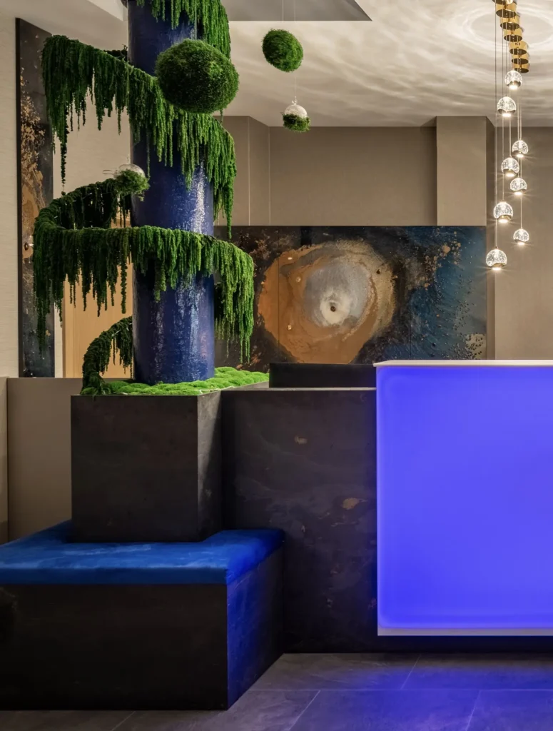 Idea projektu opiera się na niezwykłym połączeniu dwóch światów: zabytkowego wnętrza oraz wizualnych inspiracji zaczerpniętych z obrazów Kosmicznego Teleskopu Jamesa Webba. Projektanci sięgnęli po motywy mgławic, galaktyk i gwiezdnych konstelacji, przenosząc je do przestrzeni spa w formie barw, światła i struktur.