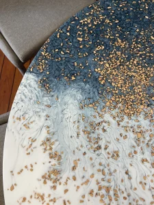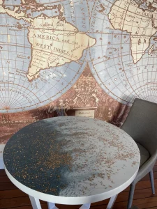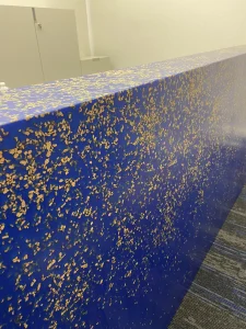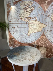 W Migaloo home specjalizujemy się w blatach do stołów konferencyjnych – jest to bardzo ważny mebel ze względów wizerunkowych dla firmy. Dzięki naszym produktom każdorazowe wejście do salki nowego gościa, może być dla niego miłym zaskoczeniem, a opowieść o tym, że blat wykonany jest z organicznego odpadu w postaci łupin orzecha włoskiego z całą pewnością zapadnie mu w pamięć – tworząc podprogowo przypowieść o ekologii i odpowiedzialności za ochronę środowiska. W siedzibie firmy Omida Sea and Air w Gdyni, wykonaliśmy blat stołu oraz blat szafki w salce konferencyjnej, stolik spotkań w pokoju prezesa, kontuar recepcji. Wykorzystane płyty NØD i Cork Decor zostały dobrane kolorystycznie pod różne elementy: kolor loga, czy stara mapę- która gościła na ścianie w pokoju prezesów.